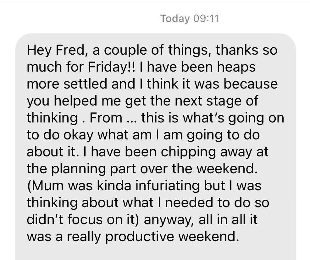 2. We continue to work with people well beyond the time that they need us. They often see such great results that they want to continue. The difference is that now it's through choice. Not necessity.
